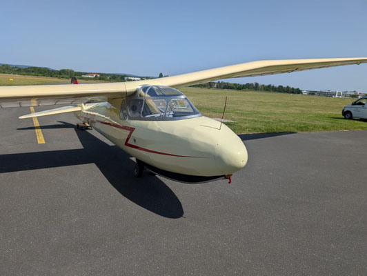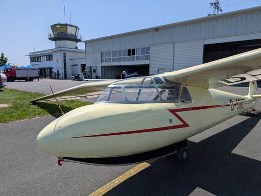 Der Condor IV wurde in den 50er-Jahren von Heini Dittmar als Leistungsdoppelsitzer entwickelt. Er basiert auf den einsitzigen Condor-Modellen der 30er-Jahre und trägt auch die charakteristischen Knickflügel seiner Ahnen. Der bei uns gezeigte Condor IV ist einer von nur drei noch fliegenden Exemplaren dieses Modells. Er wurde viele Jahre lang von unserem Nachbarverein, der BwSFG Nörvenich als Traditionssegelflugeug betrieben und war auch schon mehrere Male bei unserem Flugplatzfest zu sehen. Vor einigen Jahren hat der Verein zur Förderung des historischen Segelflugs (VFhS) den Condor übernommen und vollständig restauriert. Im Zuge der Restaurierung wurde das Flugzeug in seinen ursprünglichen Zustand zurückversetzt. Seinen ersten öffentlichen Auftritt in dieser Form hat der Condor bei unserem Flugplatzfest. Der Flugplatz Wershofen ist seit diesem Jahr einer der Stützpunkte des VFhS.