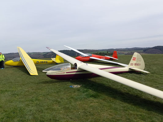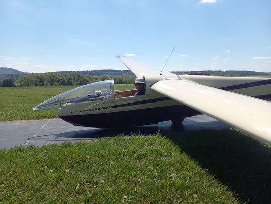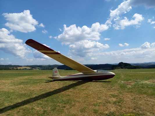 Bei der Musger Mg 23SL Arrow handelt es sich um eine wahre Rarität. Der Einsitzer wurden in den 50er-Jahren durch den österreichischen Konstrukteur Erwin Musger entwickelt und in kleiner Stückzahl von dem Schreinereibetrieb Josef Oberlerchner gebaut. Von dem für seine Zeit recht schnittig aussehende Flugzeug fliegen nur noch wenige Exemplare. Die OE-0661 wird von dem Verein zur Förderung des historischen Segelflugs (VFhS) betrieben, der sich den Erhalt historischer Segelflugzeuge im flugfähigen Zustand auf die Fahren geschrieben hat. Wershofen ist der nördlichste der im Süden und Südwesten Deutschlands sowie in Österreich lokalisierten Vereins-Stützpunkte, an dem ständig 2-3 Oldtimer-Segelflugzeuge des Vereins stationiert sind. Der VFhS freut sich über fliegende und nicht fliegende Unterstützer, sowohl als spendable Förderer als auch in Form einer Mitgliedschaft. Weitere Infos finden sich auch der Homepage des VFhS.