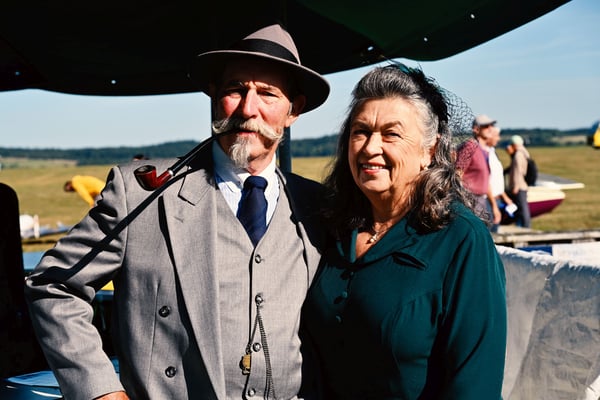 Und da wird sich wirklich alle Mühe gegeben! Die Kleidung einiger Piloten, Autofahrer und Besucher sieht so autentisch wie aus einer anderen Zeit gefallen aus, dass man sie einfach nur fotografieren MUSS... Idealerweise gleich in Gruppen oder mit dem passenden Flugzeug, Fahrzeug oder sonstigem Accessoire im Hintergrund oder damit verbunden.
